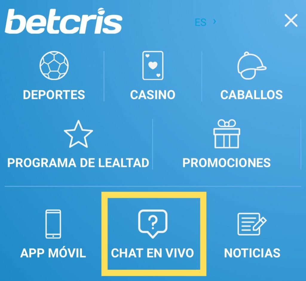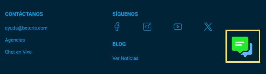 Betcris te ofrece el mejor servicio y busca responder a tus preguntas de forma rápida y eficiente. Por ello, puedes contactar nuestro Equipo de Atención al Cliente por medio del servicio de Chat en Vivo, el cual está disponible 24/7. Para encontrarlo, sigue los siguientes pasos: