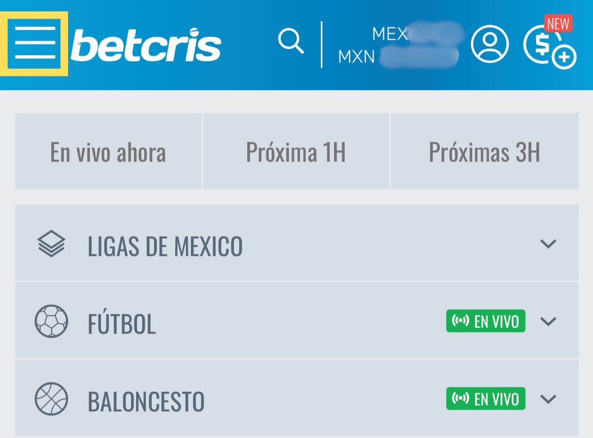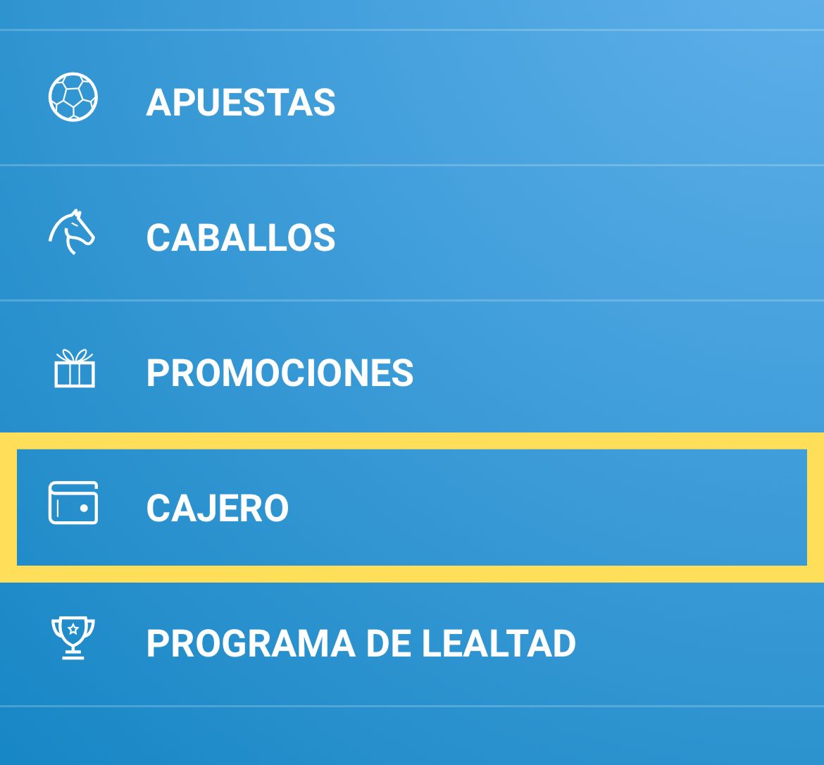 - Usuarios móviles: el ‘Cajero’ se localiza en el ‘Menú Principal’ en la parte superior izquierda de tu pantalla.