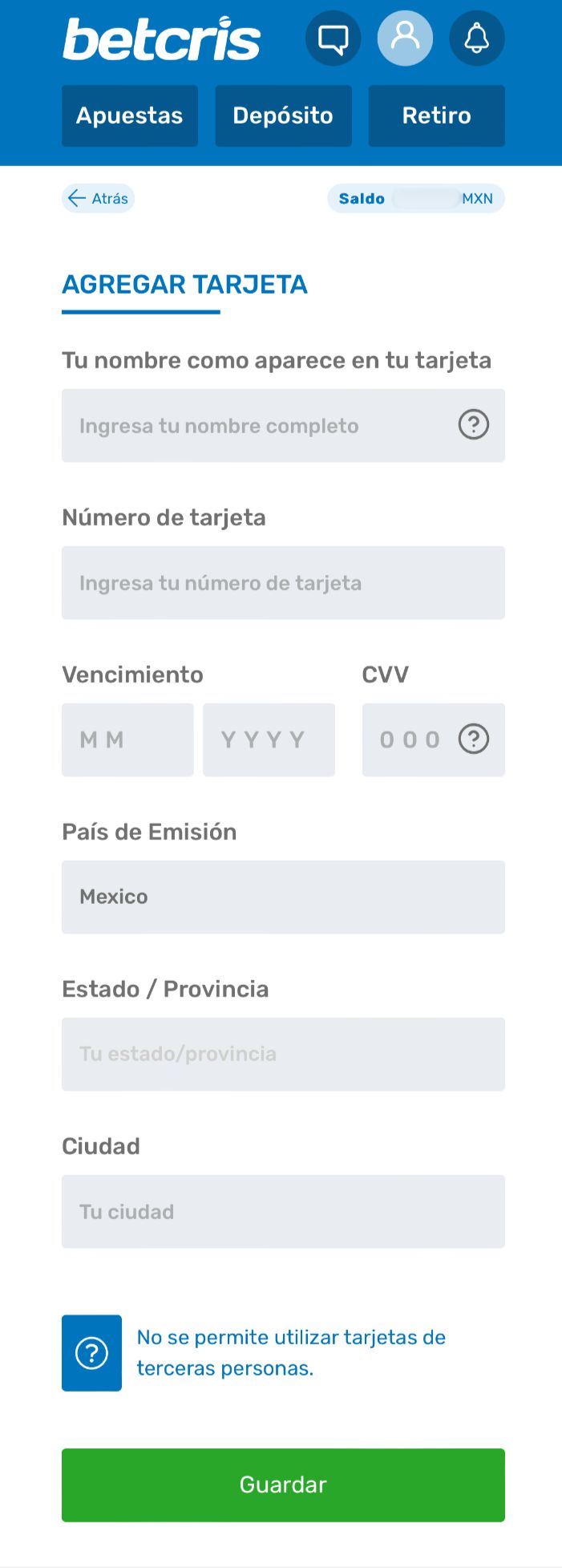 Sigue estos pasos si deseas agregar una nueva tarjeta: